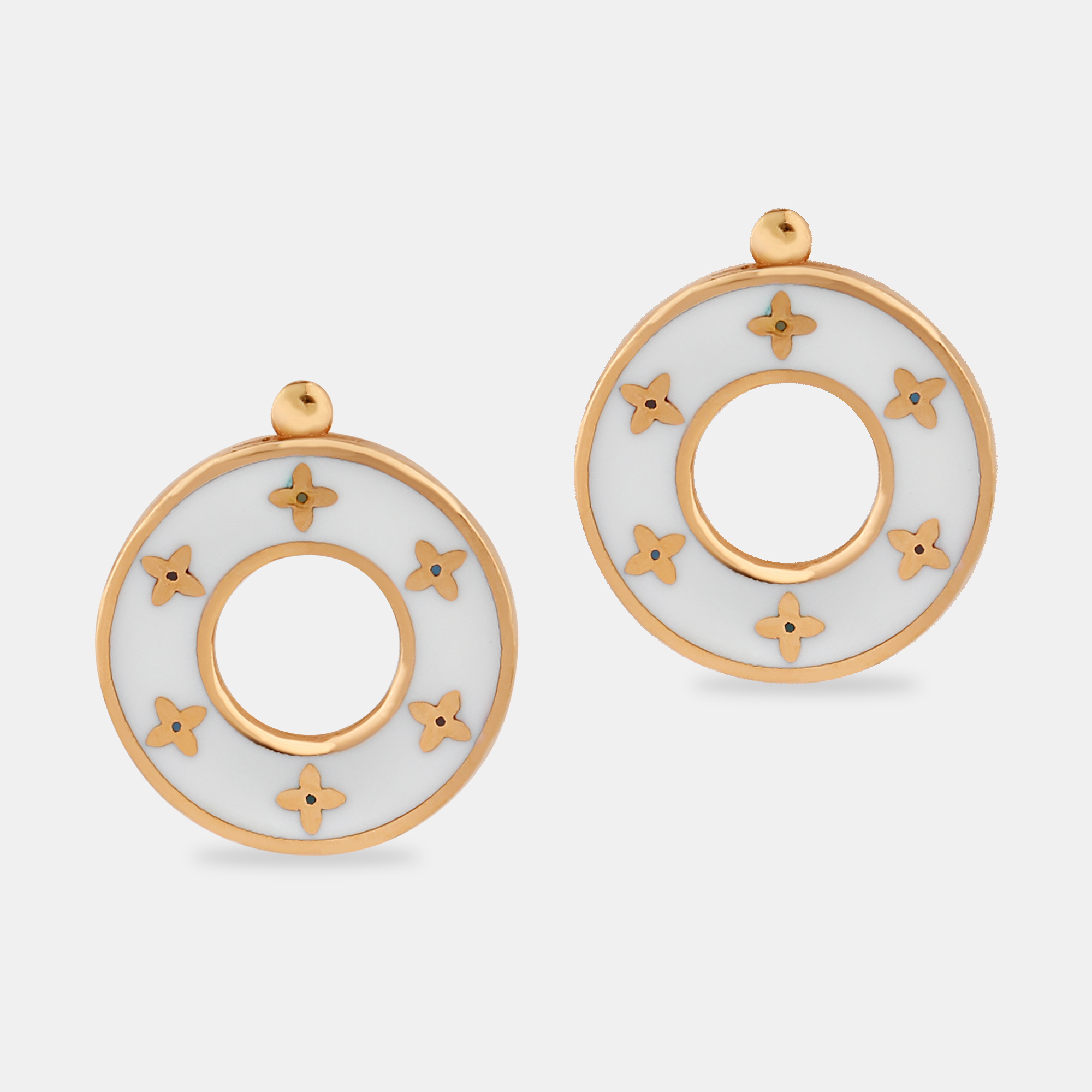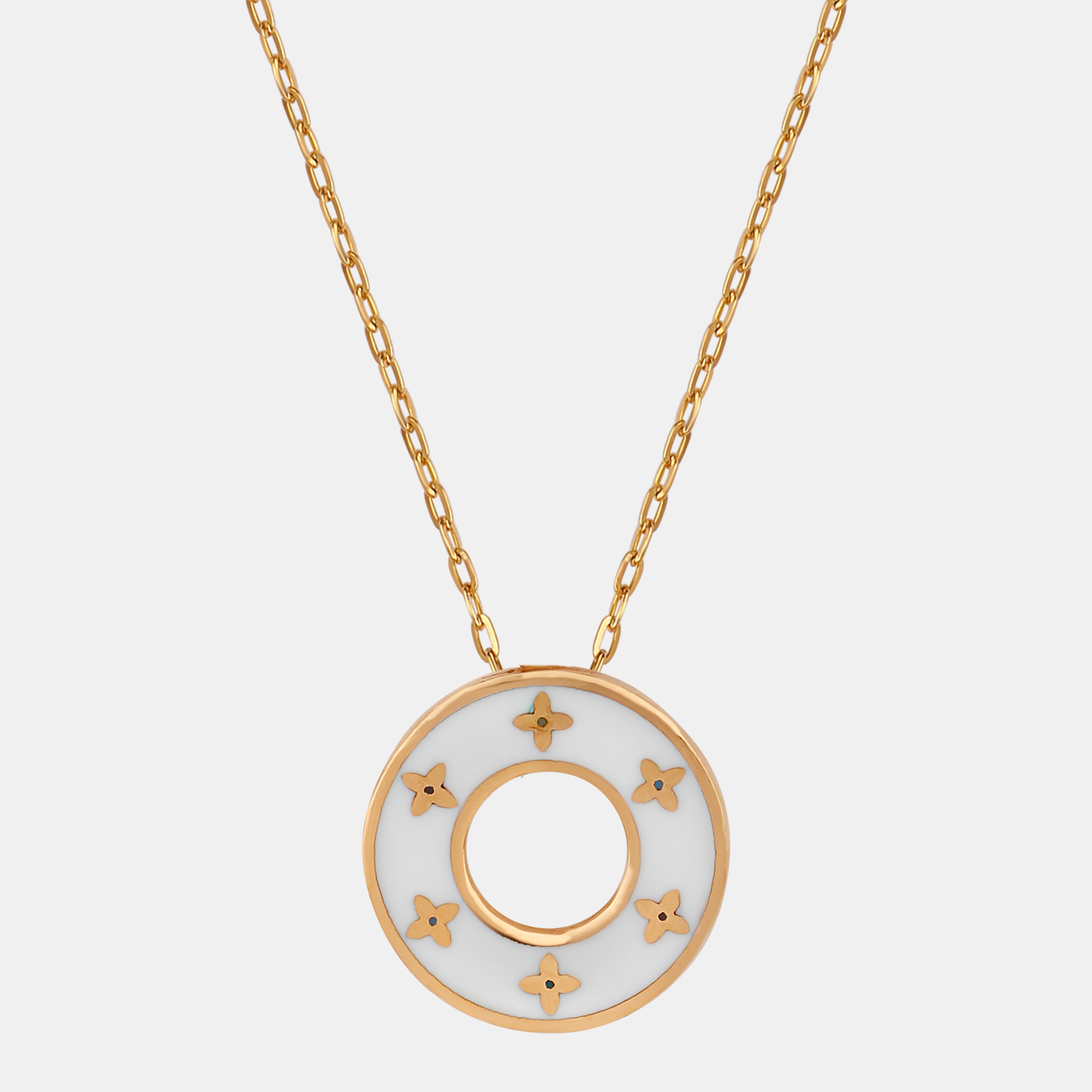 This stylish jewelry set features an open circular design with a contrasting enamel inlay. The pendant chain and matching earrings are finished with a warm gold tone, creating a modern and eye-catching look. The unique cutout detail adds a touch of contemporary flair.
